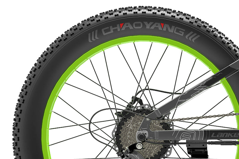 Il pneumatico largo Chaoyang da 26*4,0 pollici migliora l'aderenza e la trazione su strade sconnesse. Assicura una guida sicura e fluida su terreni difficili e in condizioni climatiche avverse.
